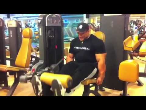 Roelly hit 5 plates on front squats which is impressive. Then he hit constant tension squats. He attacks legs from all angles. He did leg extensions. Next is stiff legged deadlift. Lying Leg curls is next & the final exercise is seated leg curls.